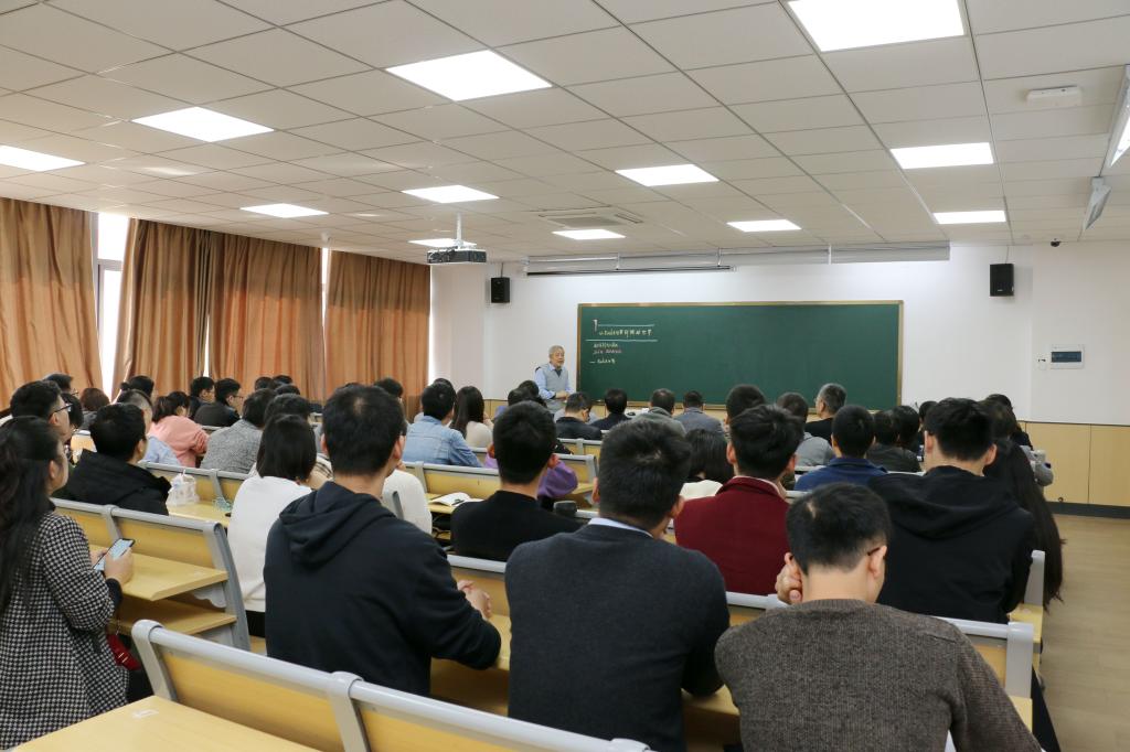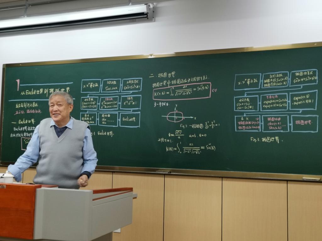 据悉,当天上午,梁昌洪教授还为信息学院的青年教师和20余名研究生上了精彩的一课 —— 作了题为《从欧几里德世界到椭球世界》的学术报告。报告提出了椭球世界这一概念。从三角函数、椭圆三角函数发展到椭球三角函数,引出各种丰富的函数并构成全新的椭球世界。该报告为我校师生更好地了解世界科研最新动态和成果提供了学术平台,开拓了国际视野。梁教授虽然有多年的授课经验,但仍然保持一丝不苟的教学态度,他的课准备得很充分,全部的教案都是手写完成的,并且不断修正补充实在值得青年教师们学习。在上课时,梁教授垫脚板书,他的板书条理清晰、工整、速度极快,采用多种颜色的粉笔书写,富有美感,示意图、关系图、对比图等简洁明了。整个课程1个半小时,这位年近八旬的古稀老师全程站立着上课,实在让人敬佩,让在座的师生实地体会到了这位名师的风采。