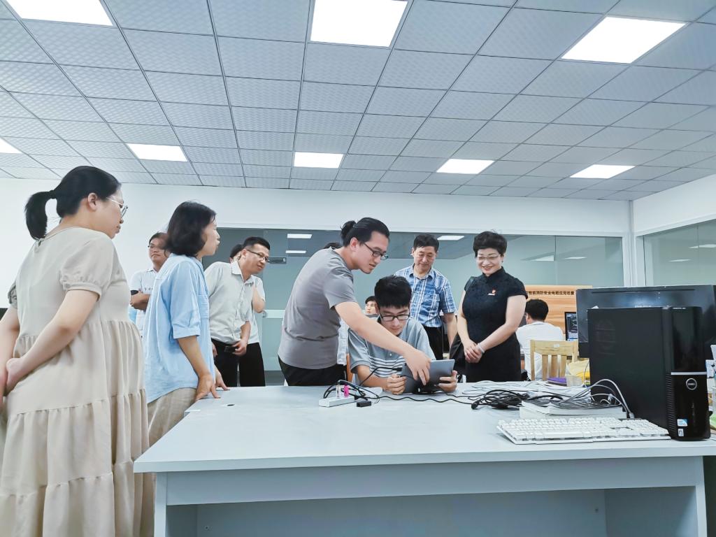 何教授首先带骆书记参观了公司所在园区、公司的核心设备及员工工作区,向骆书记介绍了其公司在智能细胞培养方面做出的突出贡献,向骆书记表达了对信息学院浓厚感情,对骆书记能够前来探望表达了诚挚感谢。骆书记在参观后表达了对何教授的敬佩之情,也对何教授为学院发展做出的科研贡献表示感谢。值此中秋节来临之际,骆书记代表学院党政向何教授送上宁大自制月饼,学生为何教授送上献花。