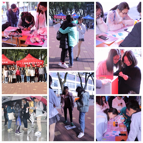 活动从预热开始便受到同学们的广泛关注和参与。11月13日开始,同学们踊跃参加了“无论是享受甜蜜还是历经悲伤,我们都愿做你的倾听者——说出你的故事”活动,纷纷转发推文并评论关于自己最喜欢的歌的故事。学院学生会男生还在21日有思广场为全校女生派发爱心早餐,并为各学院学生会女主席及学院女教师送爱心早餐,让她们感受到了快乐与温暖,为女生节活动奠定温暖的基调。11月23日14:30,信息学院学生会在有思广场举办了由男女生合作的“最佳拍档”、“携手共进”、“ 七拼八凑”,及多人参与的“不要跟着唱”等女生节趣味活动。至此,2018年国产无码