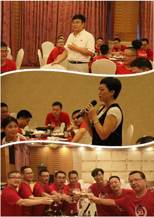 晚宴上,王让定老师首先致辞,他对同学们的邀请表达了由衷的感谢,同时也对同学们的能够重回母校表示最热烈的欢迎。曾经的班主任陈叶芳老师也作了简单的发言,感慨时光荏苒,但是真情不变。桌上同学们互吐心声,欢声笑语,仍如当年一样,把酒言欢,不醉不归。