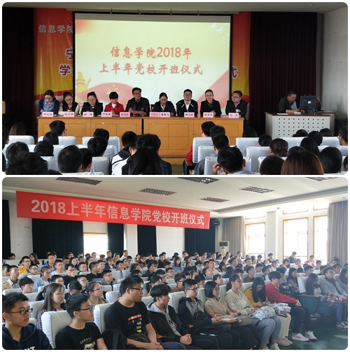4月18日中午,信息学院2018年上半年党校开班仪式在信息学院五楼报告厅隆重举行。参加此次开班仪式的有学院党委书记林奇凯、学院党委副书记、纪委书记屠春飞、院长助理严水英、分党校校务员孙文静、黄青年、胡迪、赵鑫、汪小静、宋佳敏等老师以及参加本学期的积极分子、发展对象和预备党员的同学们。大会由学院党委副书记、纪委书记屠春飞主持。