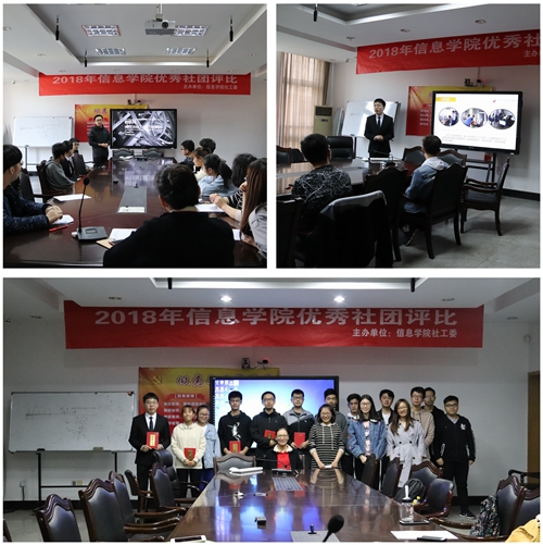 4月17日下午,2018年信息学院院级优秀社团评比在信息学院313会议室举行,学院团委书记汪小静老师、学生干部代表以及各个社团负责人参与了此次会议。