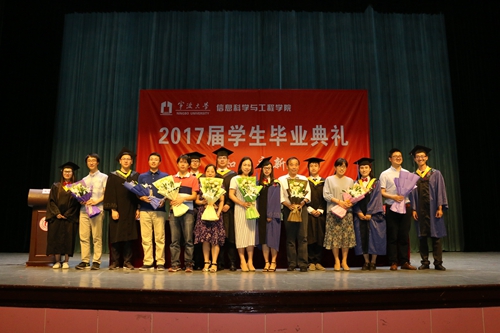 信息学院今年共有529名毕业生,其中342名本科生、182名硕士研究生、5名博士研究生。共有27名省级优秀毕业生,87名校级优秀毕业生,41名院级优秀毕业生,223名党员;50多名毕业生进入中国移动,国家电网,国有银行、中国烟草等大型国企,近60名毕业生进入百度、海康威视、利尔达科技、展讯通信、浙江大华等行业龙头企业;有5名硕士生、68名本科生考取浙大、华中科技大、同济以及等英国国内外知名高校研究生,13自动化的吴亦浩同学考取英国排名世界前1%的精英大学纽卡斯尔大学的研究生,13通信朱雯青等6名同学被推免到中科院等知名大学,学生考研率从上一年的11%上升到19%,实现历史上最大跨越。学生创新创业勇攀高峰,ACM国际大学生程序设计竞赛全球总决赛76名,“互联网+”创新创业大赛获得省赛金奖,在毕业生中,还有更多的励志达人、创新达人、实践达人、创业达人等等。