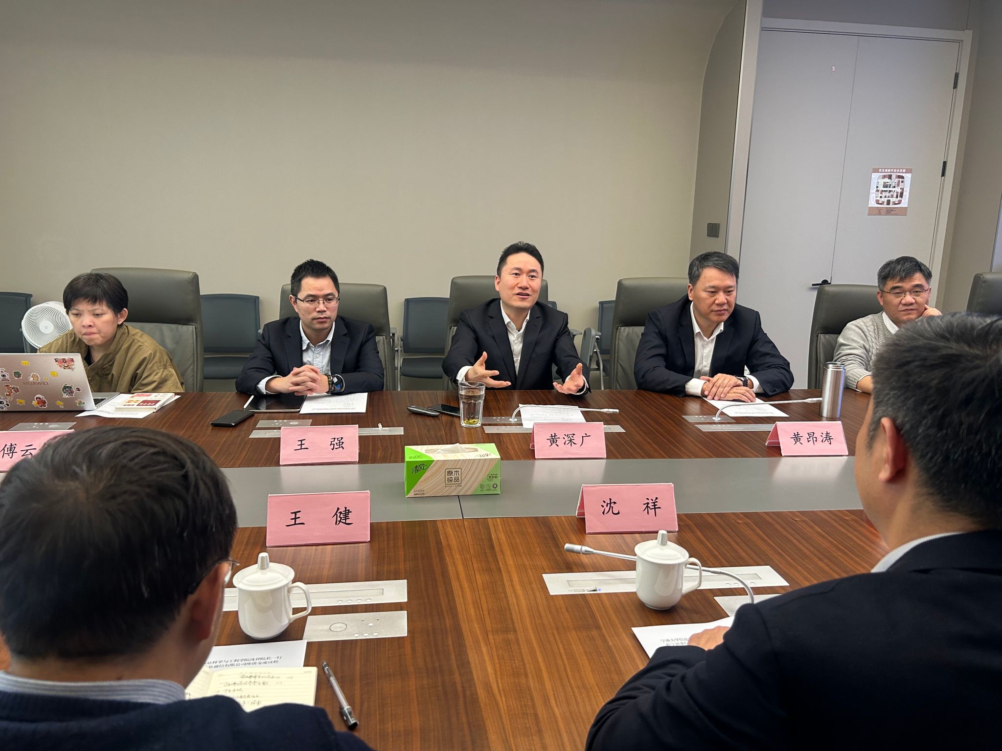 宁波港信息通信有限公司党总支书记兼董事长黄深广、党总支副书记兼总经理黄昂涛亲切接见沈祥一行。双方共同参观了公司展厅,了解了宁波舟山港股份有限公司及宁波港信息通信有限公司的发展历程和目前业务规模情况。随后,双方代表举行了座谈交流会。会上,双方就自身发展基本情况、产学研合作项目、合作机制模式等问题展开了充分讨论,本着优势互补、互学互鉴的原则双方达成了包含科研人才资源共享、港航智能化等前沿技术合作研发、高能级科创平台互帮共建、学生实习实践基地共创共建等多项合作内容。最后,双方举行了签约仪式,王强、王健代表双方进行了签约。