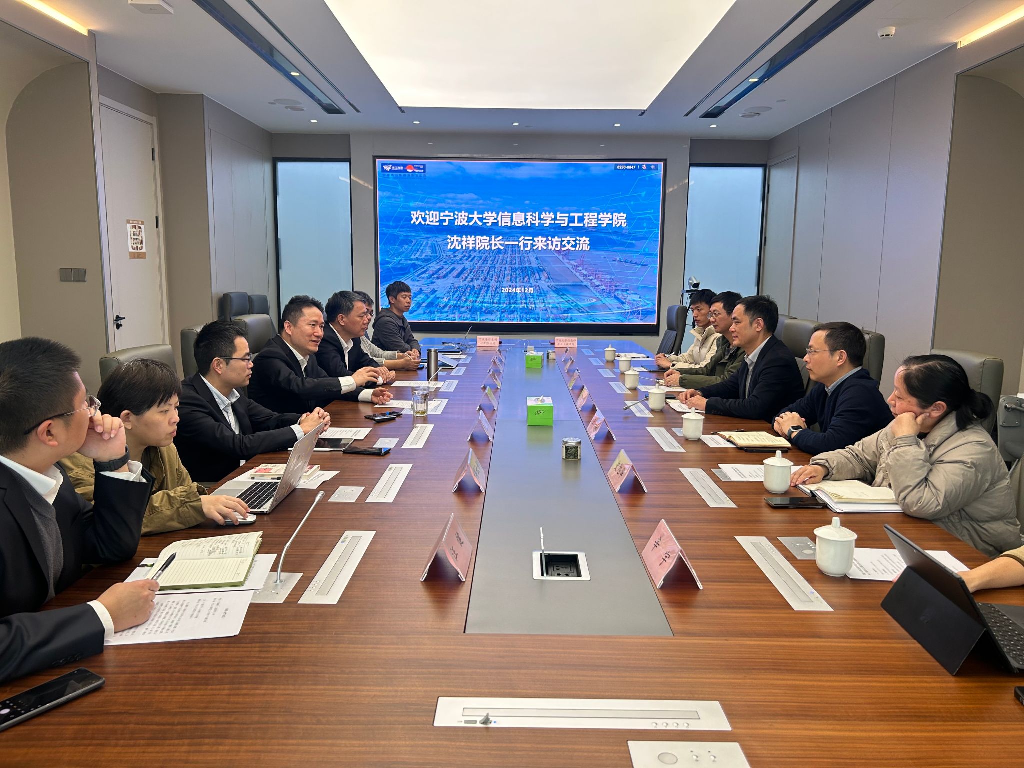 为进一步推动产教融合,深化校企协同育人功效。12月11日下午,信息学院院长沈祥、副院长王健一行赴宁波港信息通信有限公司开展交流座谈。
