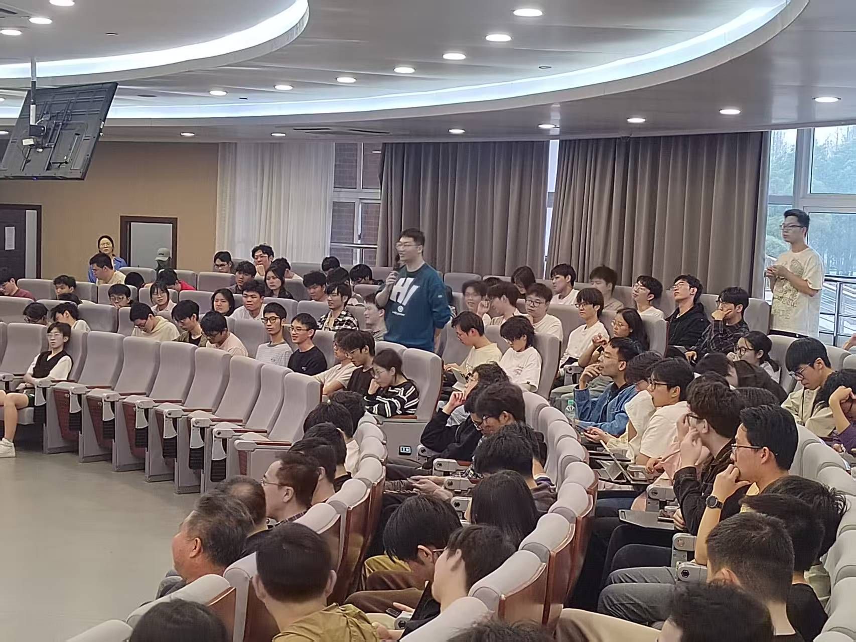 在问答环节,有同学问到未来大模型与类脑计算的关系,大模型的推理能力问题,以及使用大模型的过程中遇到的调参等问题,郑院士都一一做了精彩的答复和交流。