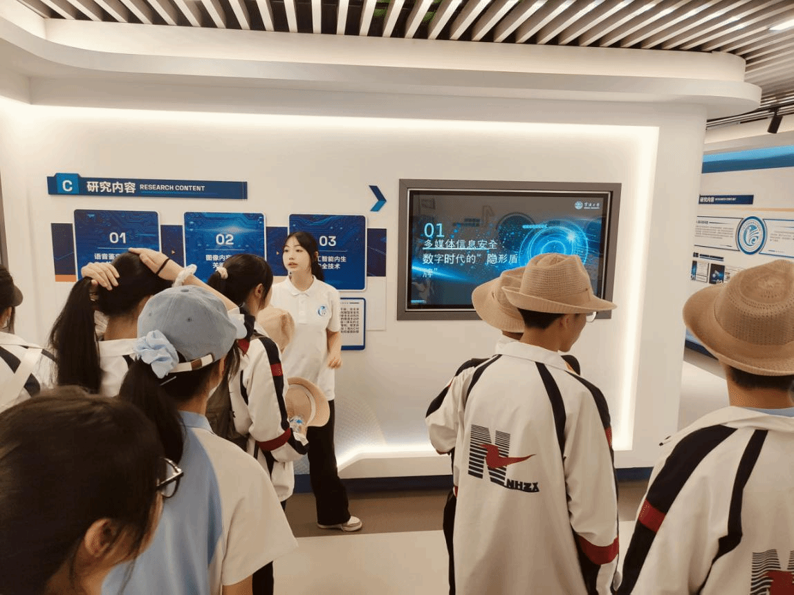 在信息学院青少年科普基地“多媒体通信教育部工程研究中心”展厅,深度伪造鉴别技术成为焦点,通过互动屏幕,学生目睹AI生成的虚假音视频如何被HRNet模型“识破”——频谱分析图上细微的像素波动、音频模型对合成声线的精准捕捉,让“眼见为实”的传统认知被颠覆。