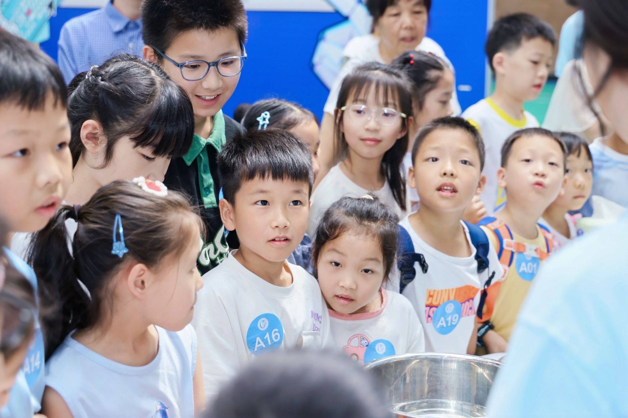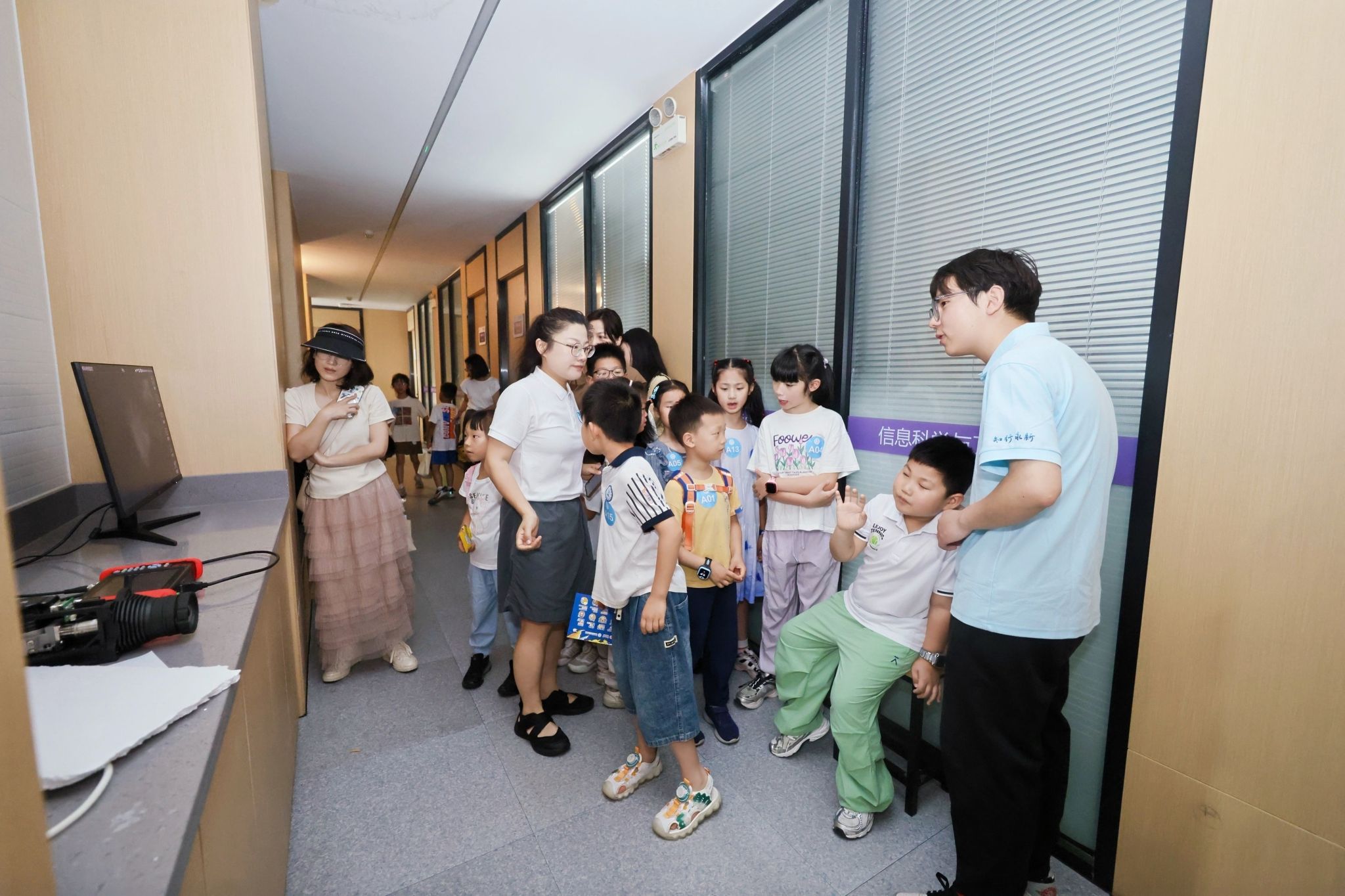 在展厅参观环节,孩子们在专业老师的带领下,走进“信息世界探索中心”,通过电子放大镜观察芯片内部结构,体验3D打印技术、AI垃圾分类和VR眼镜等前沿科技,初步领略了信息科学的魅力。