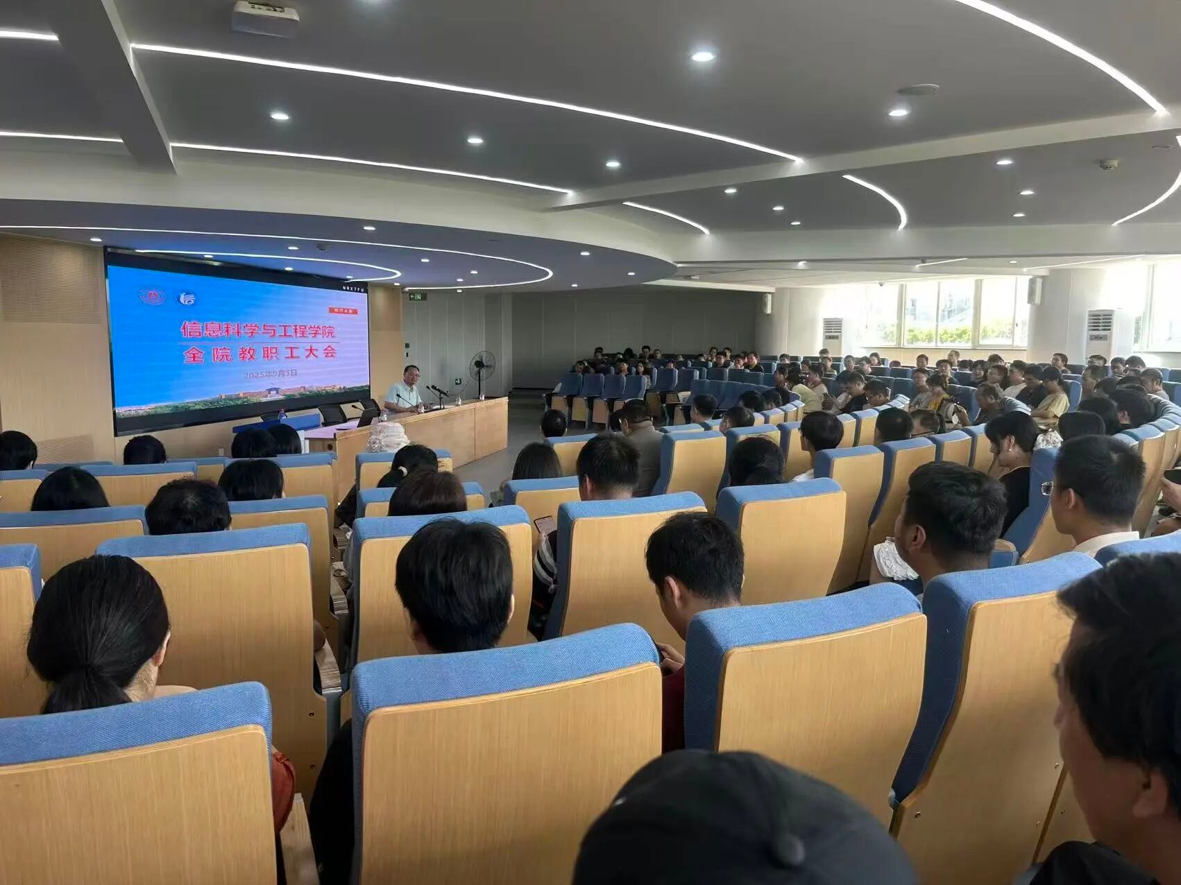 在北校区杨咏曼楼3楼报告厅隆重召开新学期全体教职工大会。会议由学院党委书记王伦耀主持。