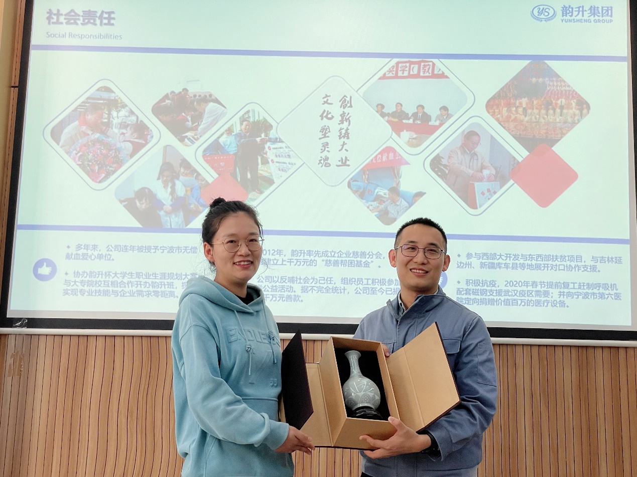 为积极响应教育部、省教育厅的号召,推进信息学院访企拓岗促就业专项活动, 11月23日下午,学院就业办汪小静、学工办严炜韬带领30余名信息学子前往宁波韵升股份有限公司与校友深入交谈,进一步加深同学们对就业形势的了解和对企业招聘的认识。