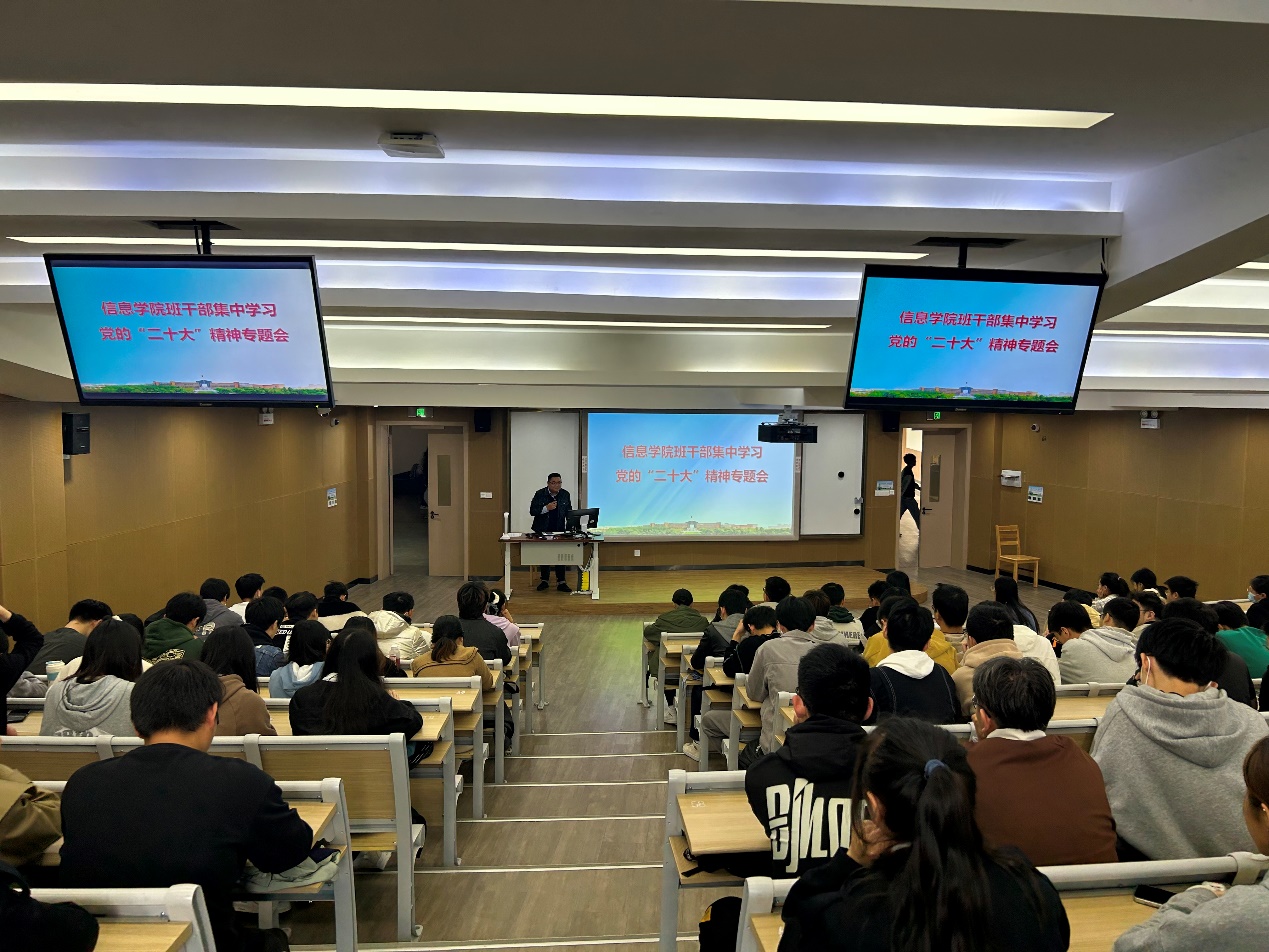 本次学习培训会议题涵盖党的“二十大”精神学习、网络文明规范倡议、重点学生关心帮扶、反诈工作培训、心理委员心理问题甄别培训五大方面。学习内容涉及学生干部工作的方方面面,前来参会的班级学生干部纷纷表示非常需要定期参与这样的培训与学习。信息学院一向重视班干部的培养与队伍建设,通过班干部的锤炼塑造,带动更多普通同学关心关注班级建设,从而形成“干部带头、同学跟上、班风有力、学风扎实”的班级氛围优循环。