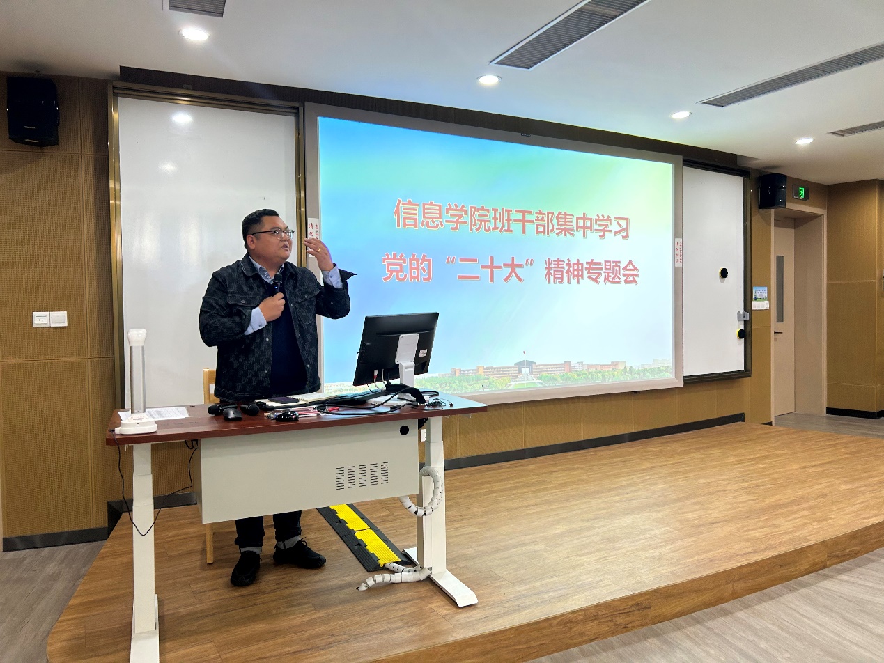 会上,胡迪老师介绍如何识别和防范电信诈骗给班干部们介绍了电信诈骗惯用的套路,提醒同学们议题要提高警惕,始终保持警觉的意识,做到“三不要”;同时她还就班干部如何做好帮扶工作做了培训。接着,严炜韬老师带引班干部们一起学习了党的“二十大”精神主要内容,并对同学们接下去如何开展学习做了部署。