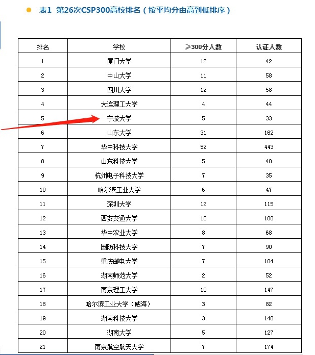 位列前五(各校300分以上的平均分排名(CSP300)见表1)。