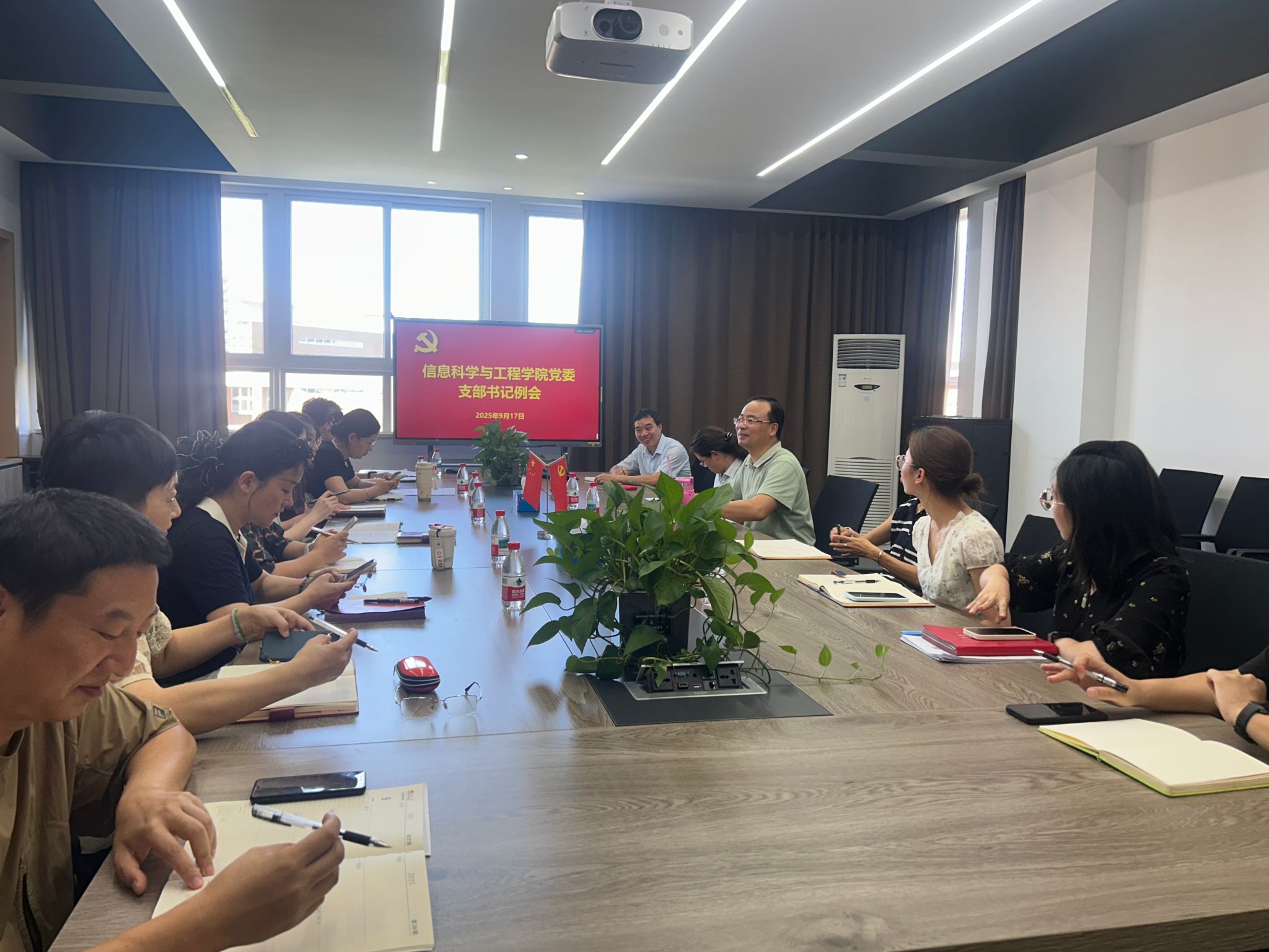 9月19日中午,信息学院在杨咏曼606会议室召开2025年9月党支部书记例会。学院党委书记王伦耀主持会议,学院党委副书记李洁、各党支部书记、组织员参会。会议以“深化理论学习、细化工作部署、解决实际问题”为核心,通过第一议题学习、任务部署和交流研讨,为学院下一阶段党建工作指明方向。
