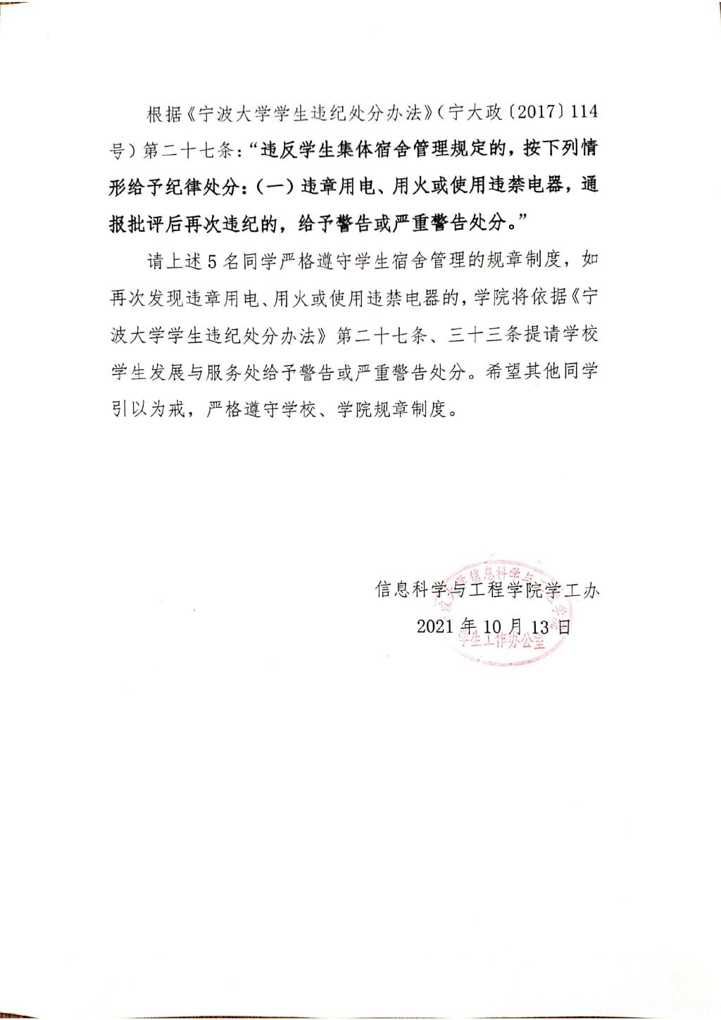 关于给予吴晴晴、林飘然、丁昊、顾家乐、郑逸铭通报批评的决定