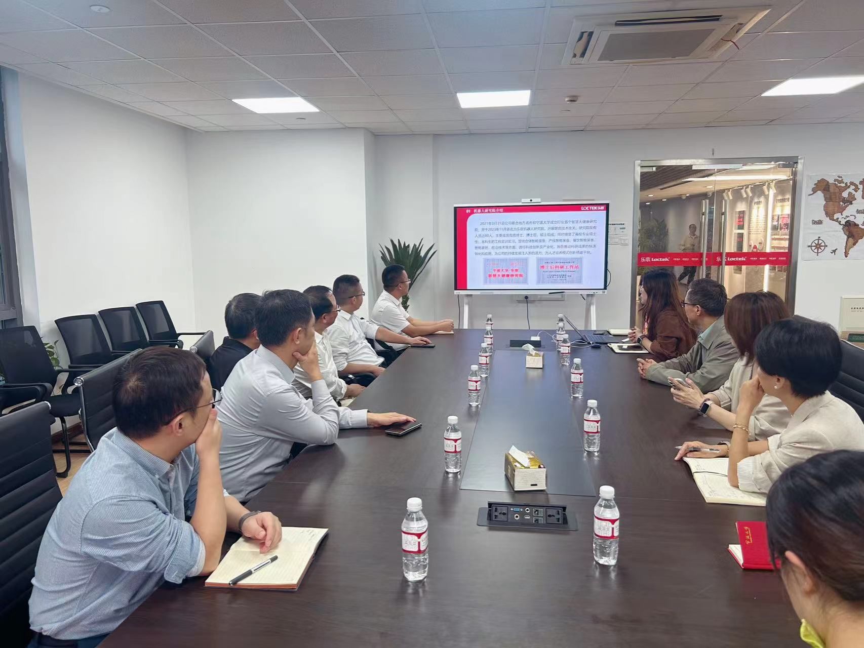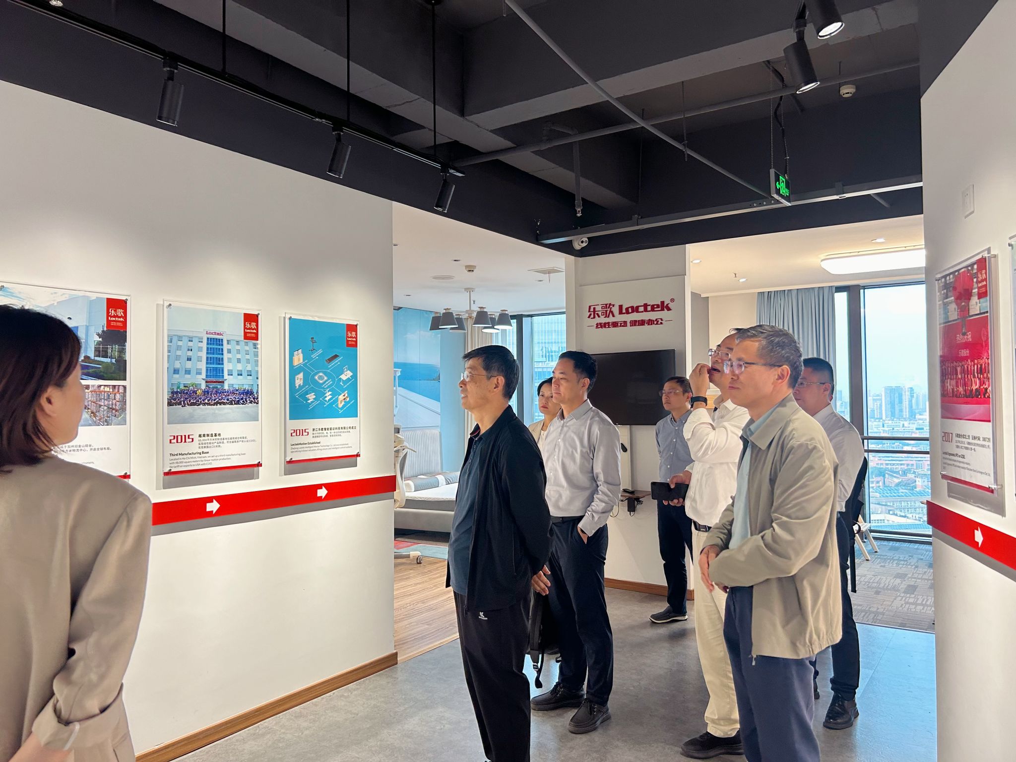 领导班子一行来到位于鄞州科技信息孵化园的乐歌研发中心,首先参观了乐歌的国产无码展厅,了解企业的发展历程和智能家居核心产品。乐歌潜心专注创新办公方式,在每个产品上将用户需求考虑到极致。到如今乐歌重点攻坚智能海外仓业务,从仓储物流的智能搬运、码垛到仓库的智能清扫,乐歌的每一步都走在创新时代的浪潮中,牢牢秉持着企业的核心价值观 “拼搏、专注、奋斗、创新”。