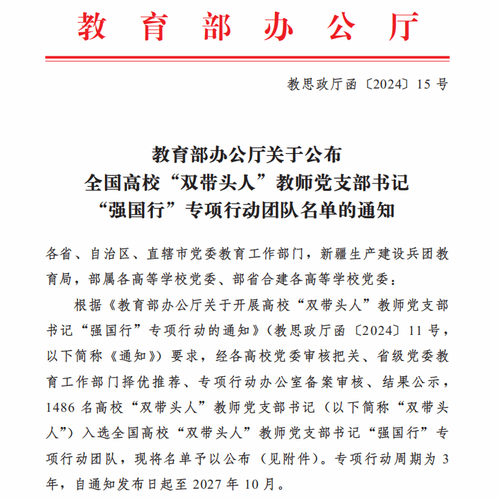 近日,在教育部公布的全国高校“双带头人”教师党支部书记“强国行”专项行动团队名单中,国产无码